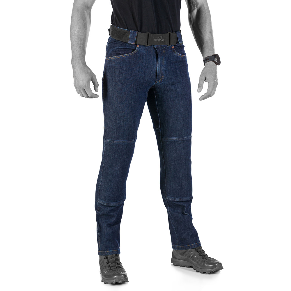 P-40 Blu-Flex Tactical Jeans – tamsiai mėlyni taktiniai džinsai su Blu-Flex Waist System, 3D juosmens sistema, Tuck-Lock kišenėmis ir suderinamumu su UF PRO 3D kelių įdėklais. Judrumo ir komforto derinys suderintas su kasdienių džinsų stiliumi.