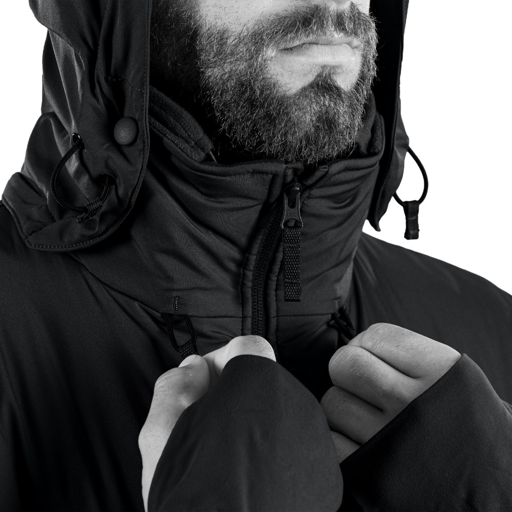 Anatominis kirpimas ir Flex/Zone zona nugaroje nevaržo judesių ir išlaiko šilumą net pilnai išsitempus. Hood/Harness® gobtuvas tiksliai seka galvos judesius ir neuždengia matymo lauko; pailgintas, sutvirtintas snapelis geriau saugo nuo kritulių.